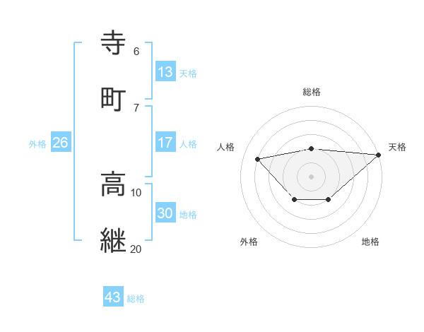 寺町 高継さんの総格は43画の2点!