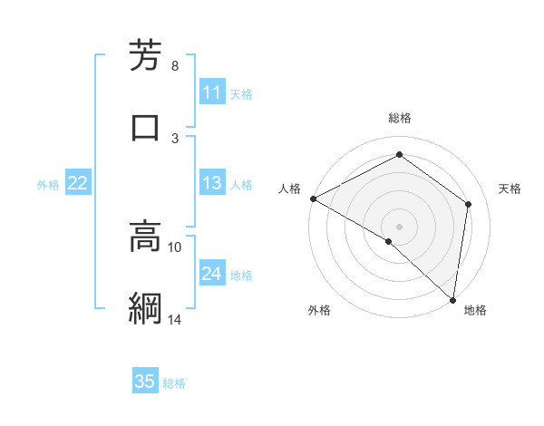 芳口 高綱さんの総格は35画の4点!