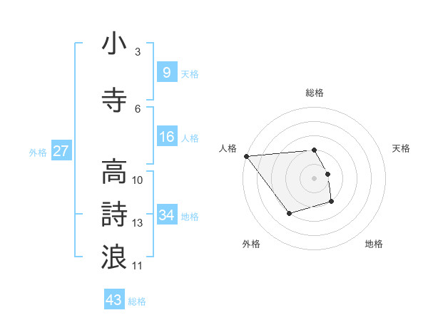小寺 高詩浪さんの総格は43画の2点!