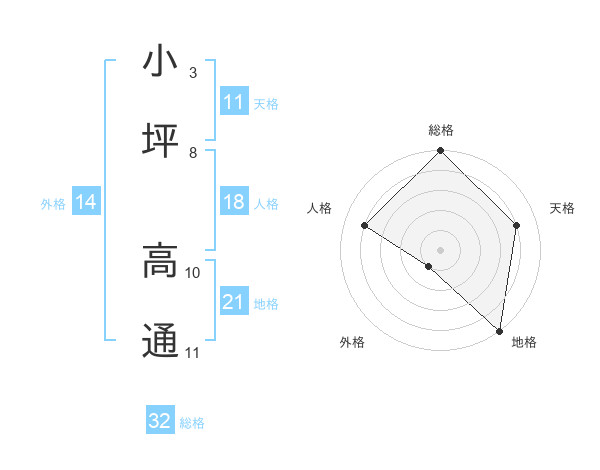 小坪 高通さんの総格は32画の5点!