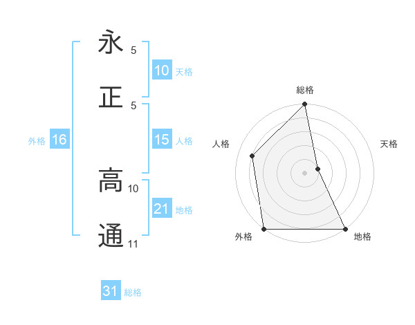 永正 高通さんの総格は31画の5点!