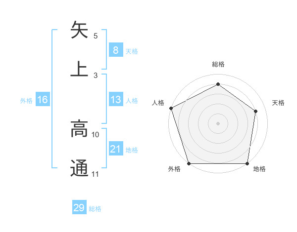 矢上 高通さんの総格は29画の4点!