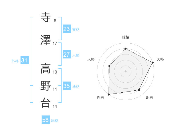 寺澤 高野台さんの総格は58画の4点!