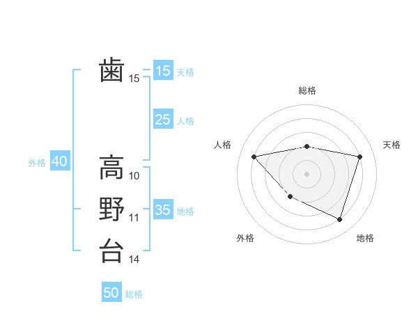 歯 高野台さんの総格は50画の2点!