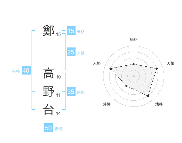 鄭 高野台さんの総格は50画の2点!