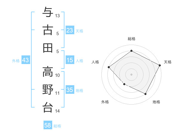 与古田 高野台さんを姓名の画数から五運を鑑定