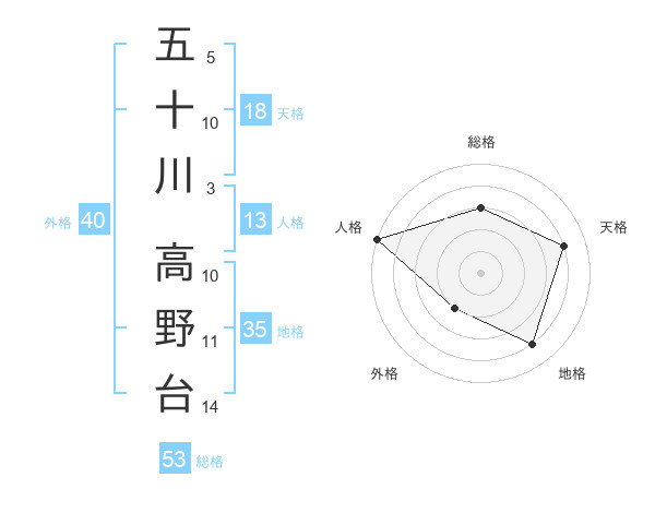 五十川 高野台さんを姓名の画数から五運を鑑定
