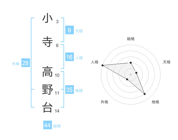 小寺 高野台さんの総格は44画の2点!