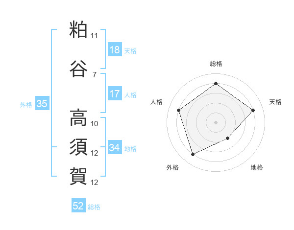 粕谷 高須賀さんを姓名の画数から五運を鑑定