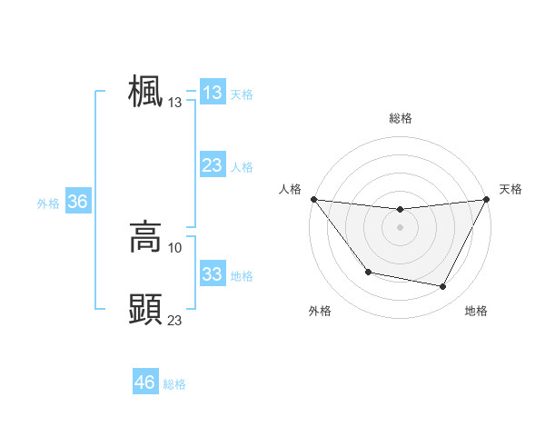 楓 高顕さんの総格は46画の1点!