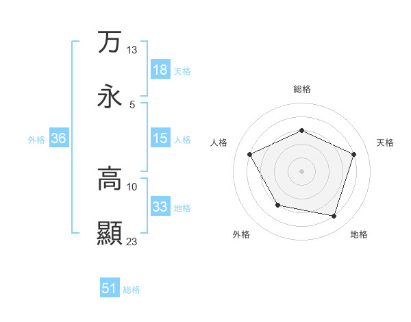 万永 高顯さんの総格は51画の3点!