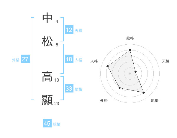 中松 高顯さんの総格は45画の4点!