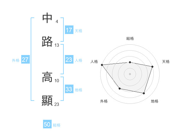 中路 高顯さんの総格は50画の2点!