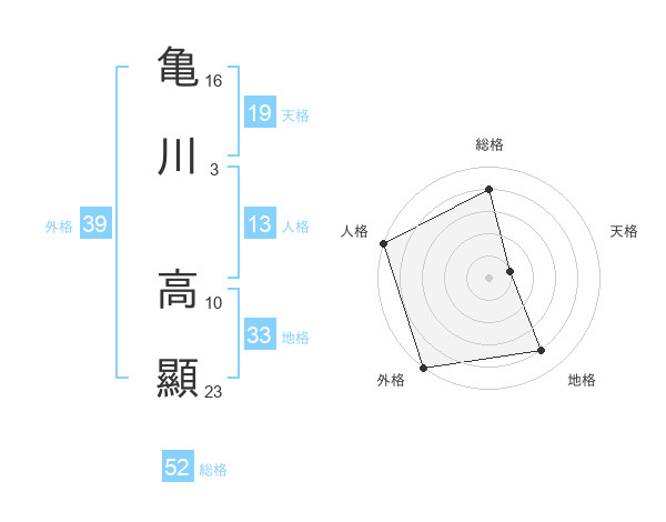 亀川 高顯さんの総格は52画の4点!