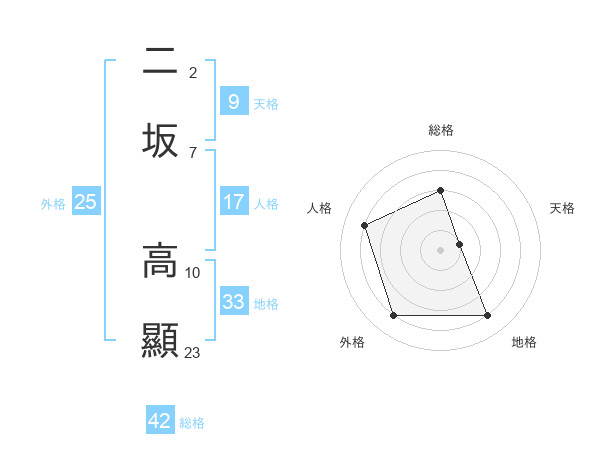 二坂 高顯さんの地格は33画の4点!