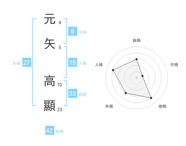元矢 高顯さんの総格は42画の3点!