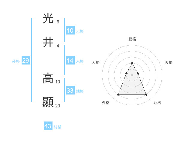 光井 高顯さんの総格は43画の2点!