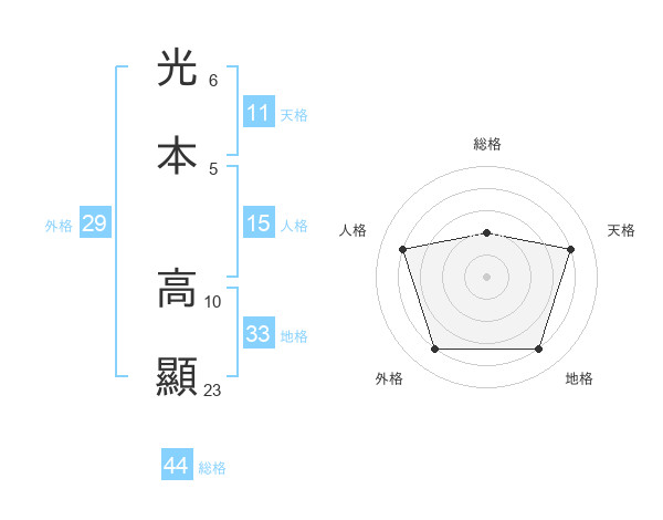 光本 高顯さんの総格は44画の2点!