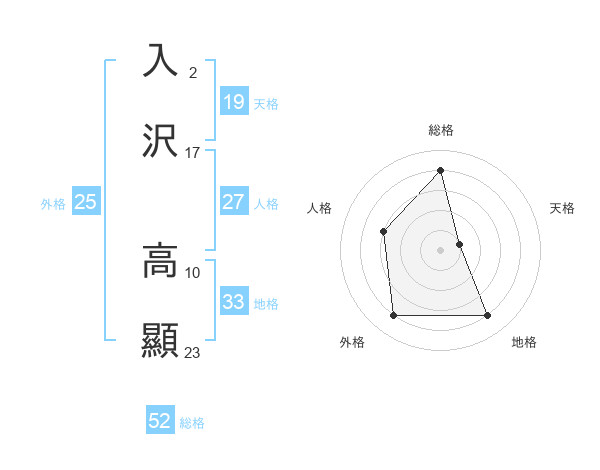 入沢 高顯さんの総格は52画の4点!