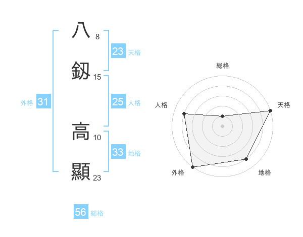 八釼 高顯さんを姓名の画数から五運を鑑定