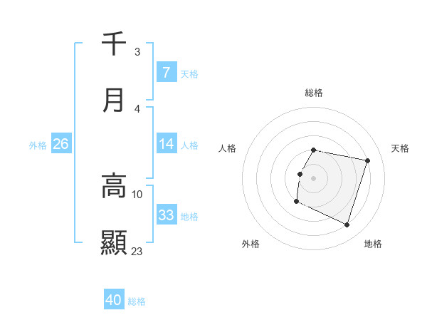 千月 高顯さんの総格は40画の2点!