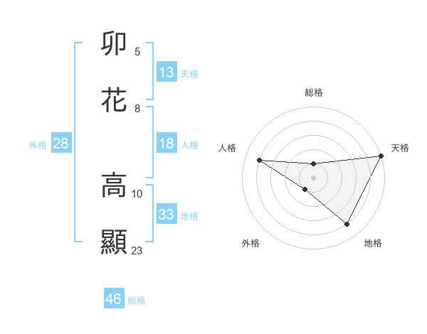 卯花 高顯さんを姓名の画数から五運を鑑定