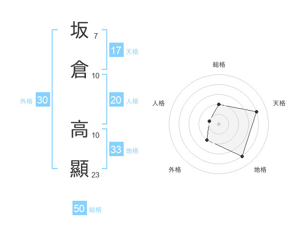 坂倉 高顯さんの総格は50画の2点!