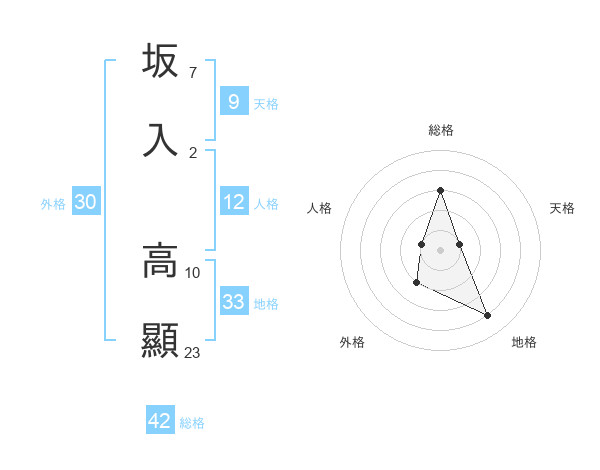 坂入 高顯さんの地格は33画の4点!