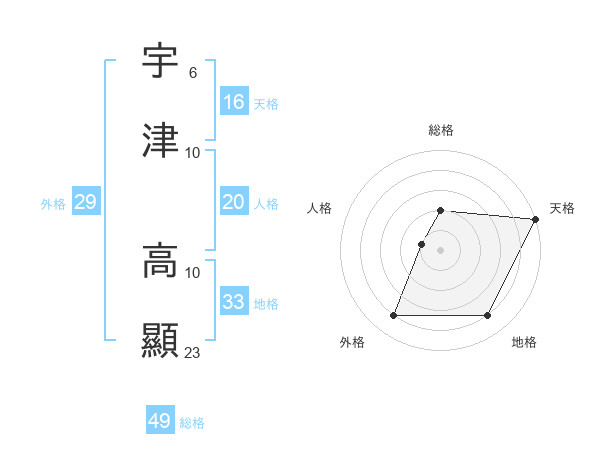 宇津 高顯さんの総格は49画の2点!