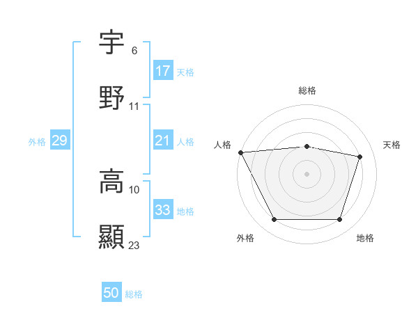 宇野 高顯さんの総格は50画の2点!