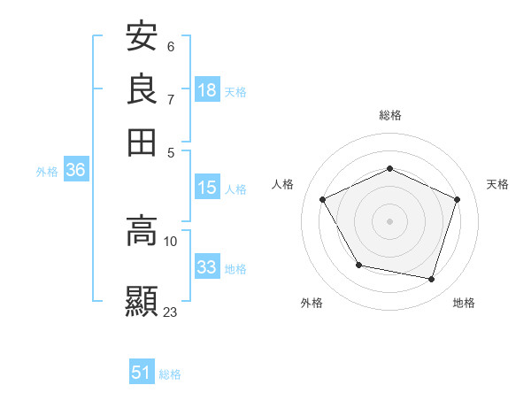 安良田 高顯さんの総格は51画の3点!