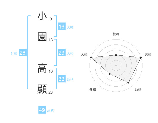 小園 高顯さんの総格は49画の2点!