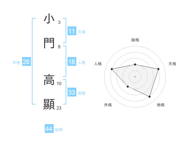 小門 高顯さんの総格は44画の2点!