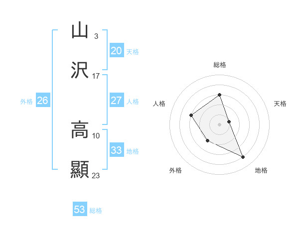 山沢 高顯さんの総格は53画の3点!