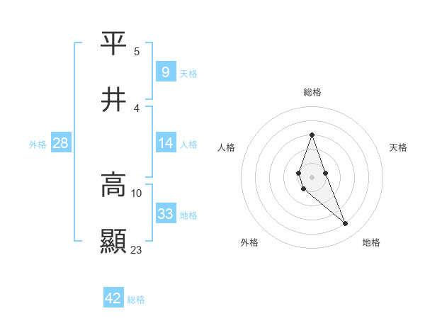 平井 高顯さんの総格は42画の3点!