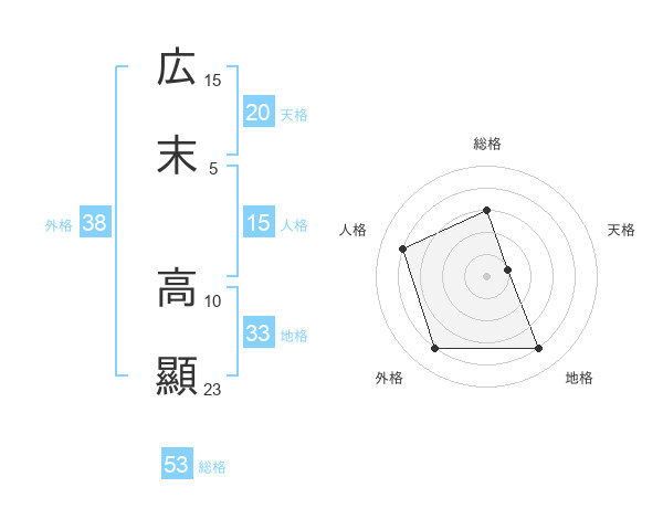 広末 高顯さんの総格は53画の3点!