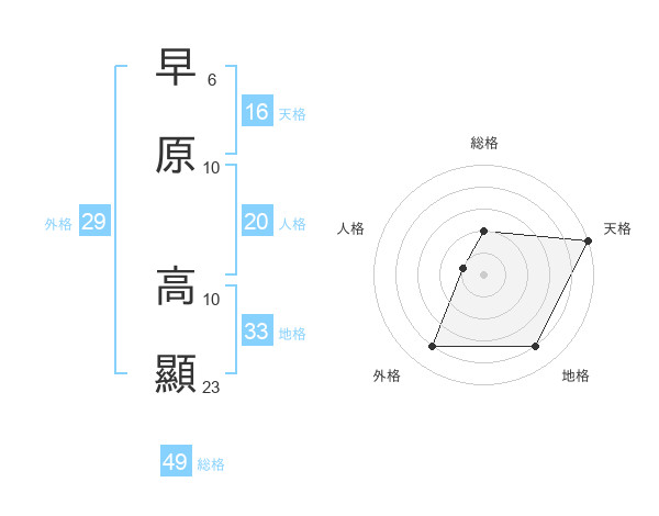早原 高顯さんの総格は49画の2点!