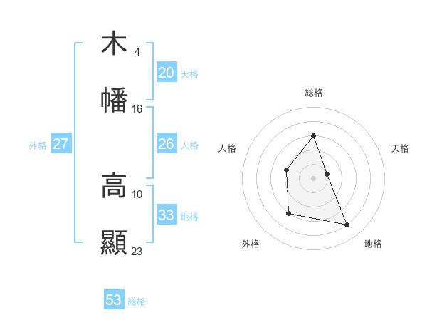 木幡 高顯さんを姓名の画数から五運を鑑定