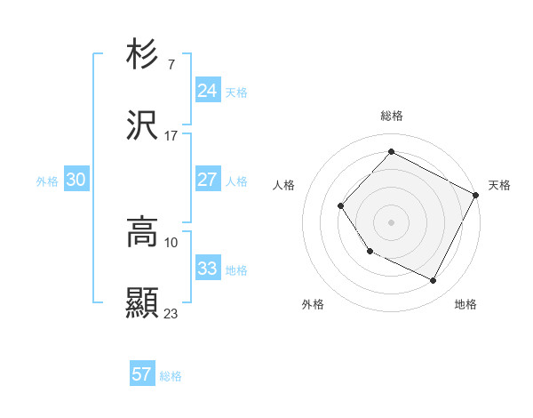 杉沢 高顯さんの総格は57画の4点!
