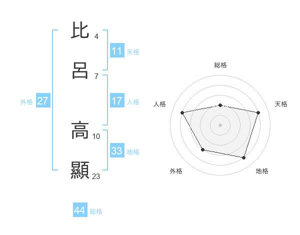 比呂 高顯さんの総格は44画の2点!