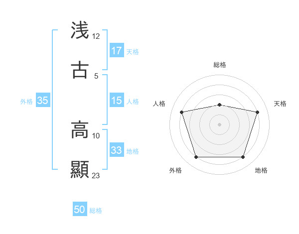 浅古 高顯さんの総格は50画の2点!