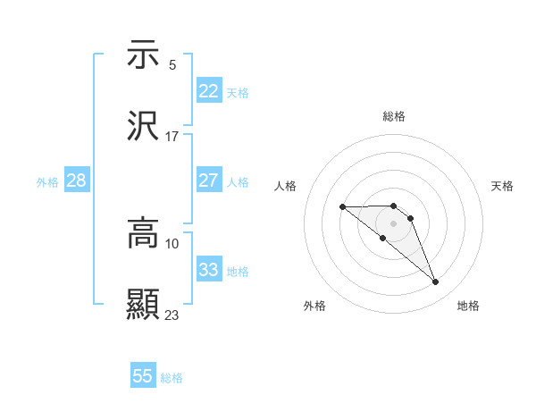 示沢 高顯さんを姓名の画数から五運を鑑定