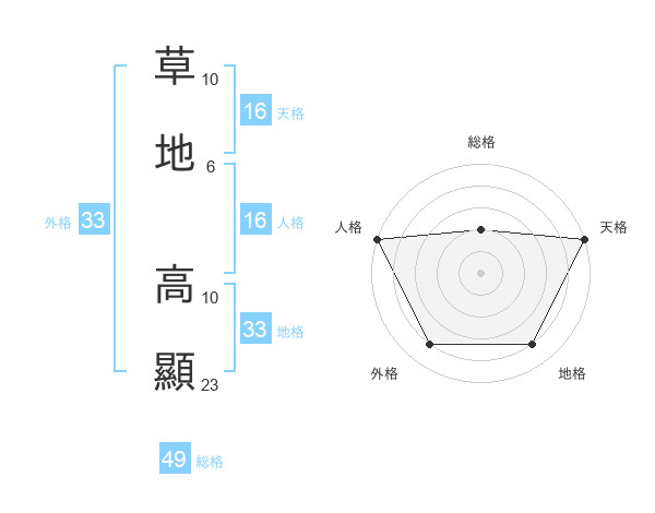 草地 高顯さんの地格は33画の4点!