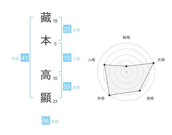 藏本 高顯さんを姓名の画数から五運を鑑定