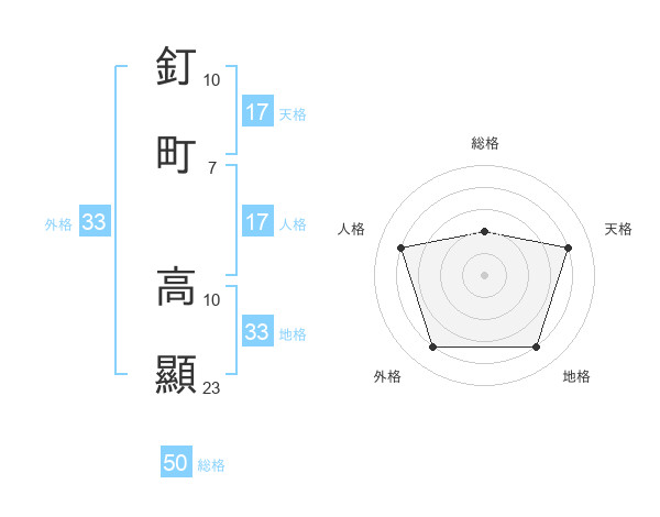 釘町 高顯さんの総格は50画の2点!