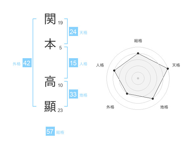 関本 高顯さんの総格は57画の4点!