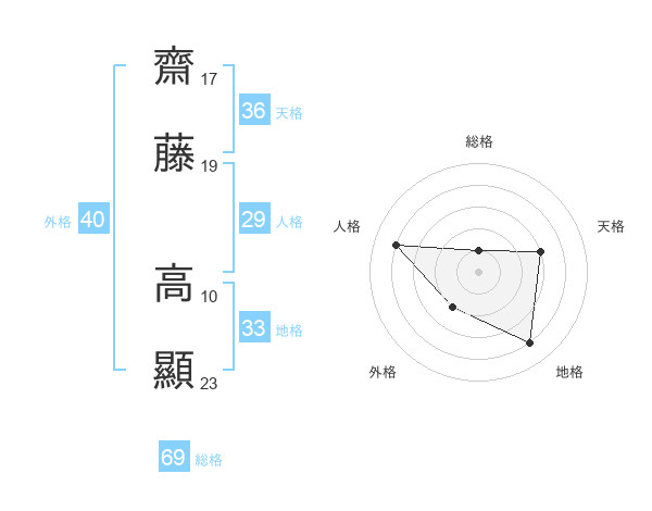 齋藤 高顯さんの総格は69画の1点!