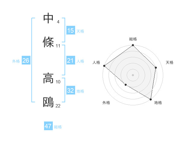 中條 高鴎さんの総格は47画の5点!