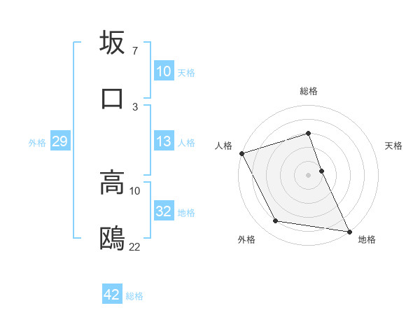 坂口 高鴎さんの総格は42画の3点!