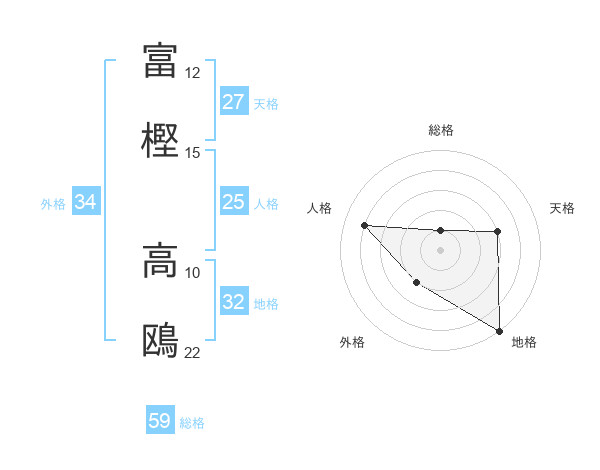 富樫 高鴎さんを姓名の画数から五運を鑑定